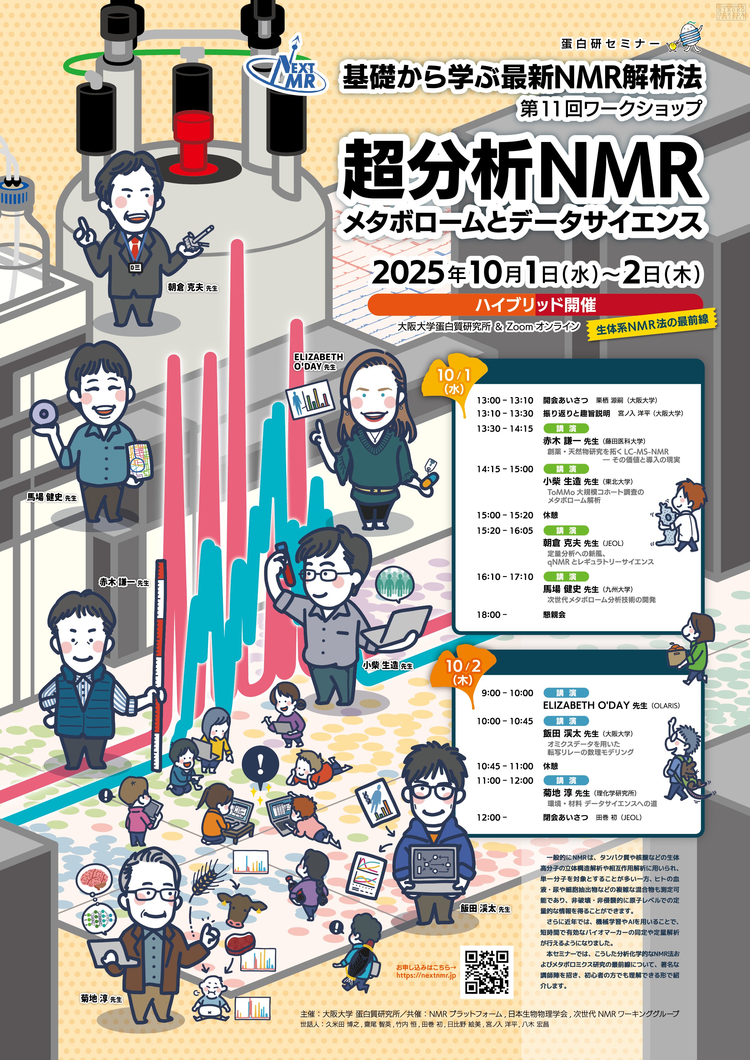 本セミナーでは、こうした 分析化学的なNMR法およびメタボロミクス研究の最前線 について、著名な講師陣を招き、初心者の方でも理解できる形で紹介します。また、今後のメタボロミクス研究や医療診断、環境保全への応用に向けて、NMR以外の手法との連携についても議論する予定です。